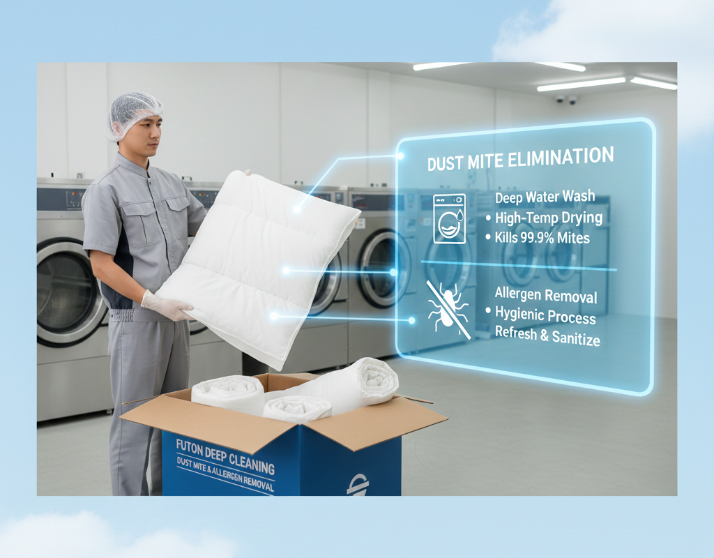 - 高品質な洗浄:家庭用やコインランドリーでは不可能な、高温での完全水洗いと専用洗剤による徹底的なアレルゲン除去が可能です。