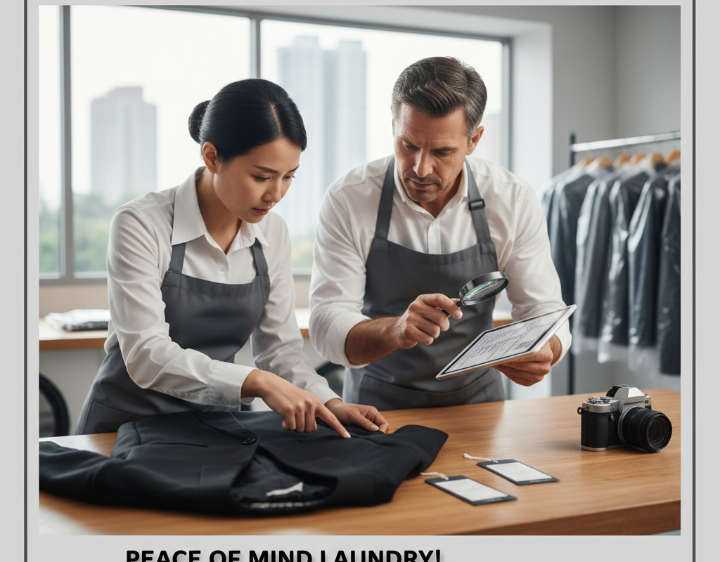 - 全方位撮影:衣類全体の表裏に加え、「洗濯表示タグ」「ブランドロゴ」「現在の汚れ箇所」「ボタン・装飾の状態」をスマホで撮影します。これは、万が一の紛失や破損時の強力なエビデンス(証拠)になります。