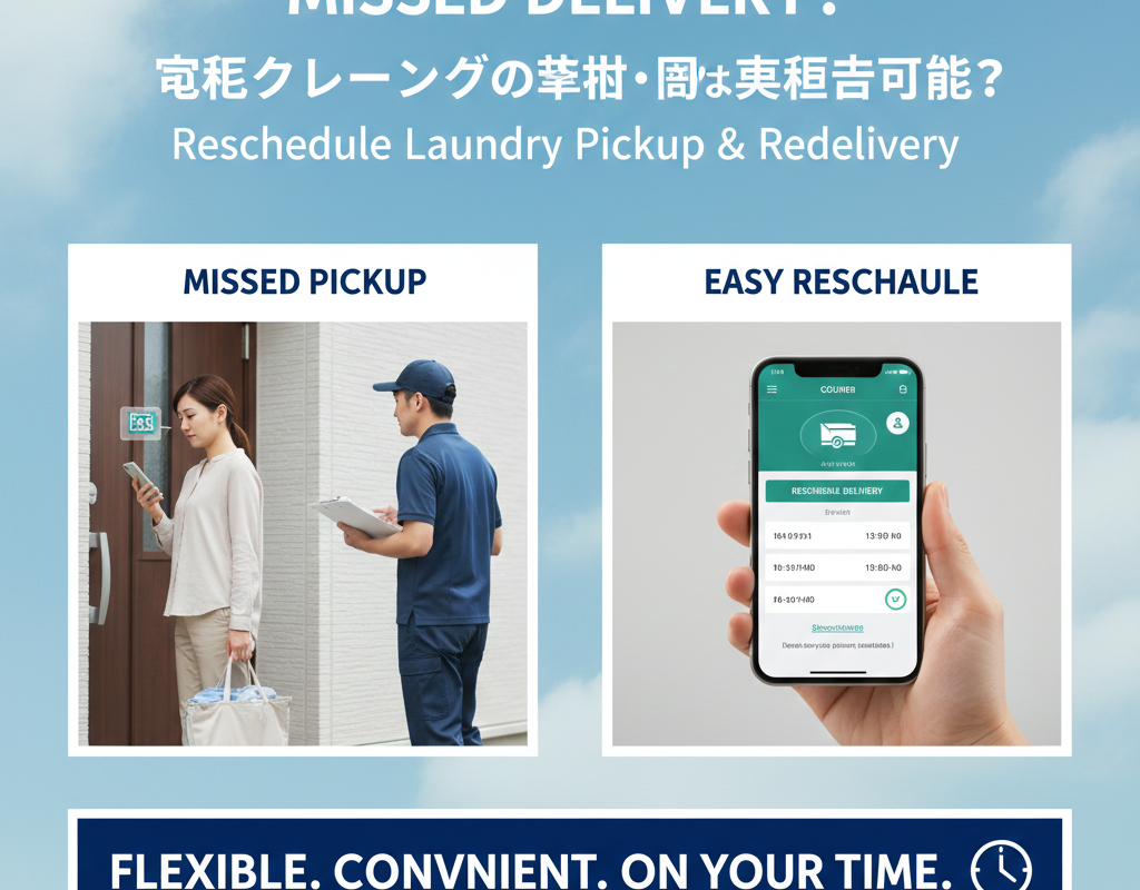 - クリーニング業者に依頼(例外): 荷物が出荷される前(出荷通知が届く前)であれば、クリーニング業者のマイページから配送日時を変更できます。出荷後は配送業者が窓口となります。